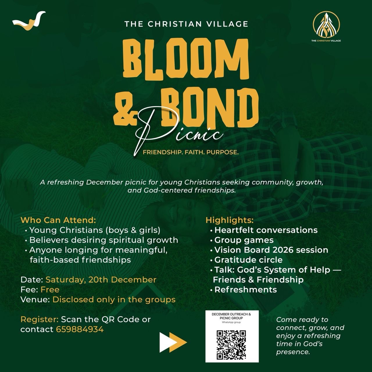 From daily devotionals and podcast conversations, to Daily Truth content, the Bloom & Bond Picnic, and outreach programs like ASAD for Jesus, our mission is to make faith practical, relational, and life-transforming.